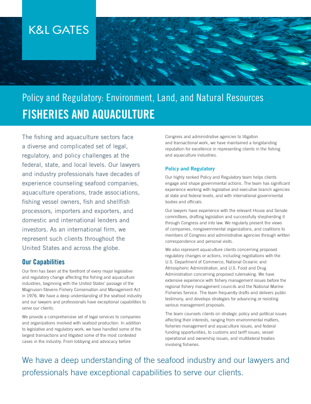 Learn more about our Fisheries and Aquaculture practice at klgates.com/Fisheries.